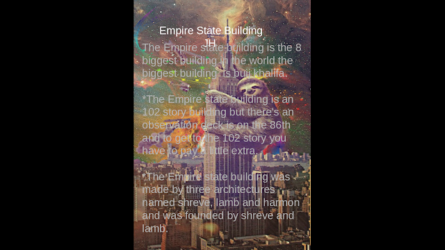 To day Mrs cutler asked us to share what we did on are holidays by asking us to think about one amazing thing, one scary thing and one way we relaxed. So this is what i did.